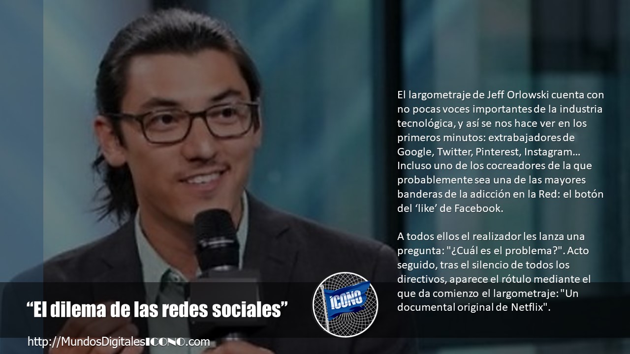 El largometraje de Jeff Orlowski cuenta con no pocas voces importantes de la industria tecnológica, y así se nos hace ver en los primeros minutos: extrabajadores de Google, Twitter, Pinterest, Instagram… Incluso uno de los cocreadores de la que probablemente sea una de las mayores banderas de la adicción en la Red: el botón del ‘like’ de Facebook. A todos ellos el realizador les lanza una pregunta: «¿Cuál es el problema?». Acto seguido, tras el silencio de todos los directivos, aparece el rótulo mediante el que da comienzo el largometraje: «Un documental original de Netflix».