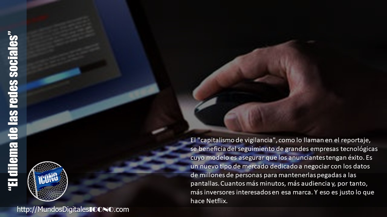 El «capitalismo de vigilancia», como lo llaman en el reportaje, se beneficia del seguimiento de grandes empresas tecnológicas cuyo modelo es asegurar que los anunciantes tengan éxito. Es un nuevo tipo de mercado dedicado a negociar con los datos de millones de personas para mantenerlas pegadas a las pantallas. Cuantos más minutos, más audiencia y, por tanto, más inversores interesados en esa marca. Y eso es justo lo que hace Netflix.