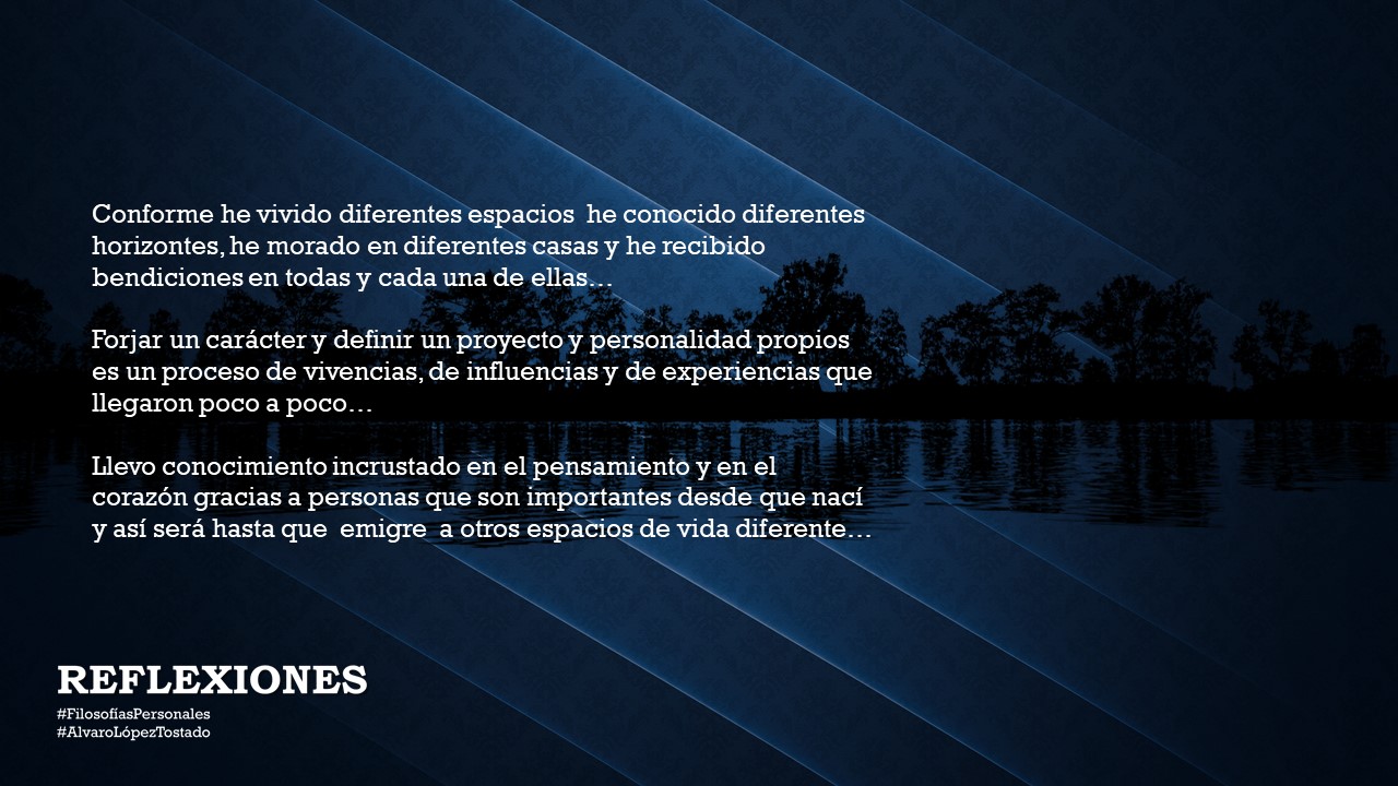 Conforme he vivido diferentes espacios he conocido diferentes horizontes, he morado en diferentes casas y he recibido bendiciones en todas y cada una de ellas… Forjar un carácter y definir un proyecto y personalidad propios es un proceso de vivencias, de influencias y de experiencias que llegaron poco a poco…