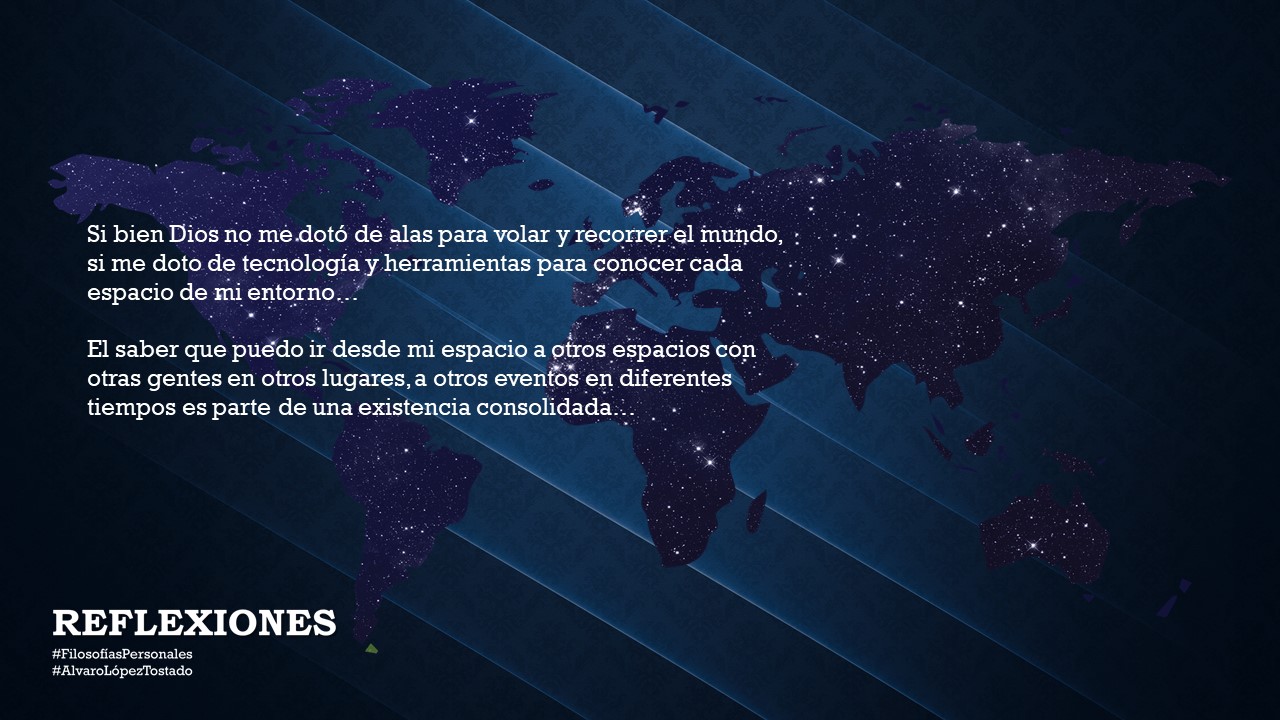 Llevo conocimiento incrustado en el pensamiento y en el corazón gracias a personas que son importantes desde que nací y así será hasta que emigre a otros espacios de vida diferente… Poco a poco voy quitándole ruido a mi vida… Cosas, detalles que son ruido, cosas que aturden, confunden…Cosas que me desorientan… Algunas son personas… Otras son rutinas… Otras son cuestiones de enfoque, sintonía… Si bien Dios no me dotó de alas para volar y recorrer el mundo, si me doto de tecnología y herramientas para conocer cada espacio de mi entorno…
