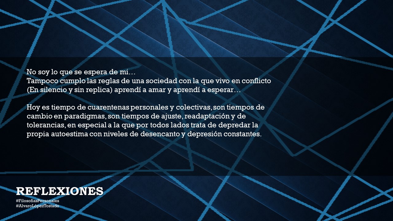 Hoy es tiempo de cuarentenas personales y colectivas, son tiempos de cambio en paradigmas, son tiempos de ajuste, readaptación y de tolerancias, en especial a la que por todos lados trata de depredar la propia autoestima con niveles de desencanto y depresión constantes.